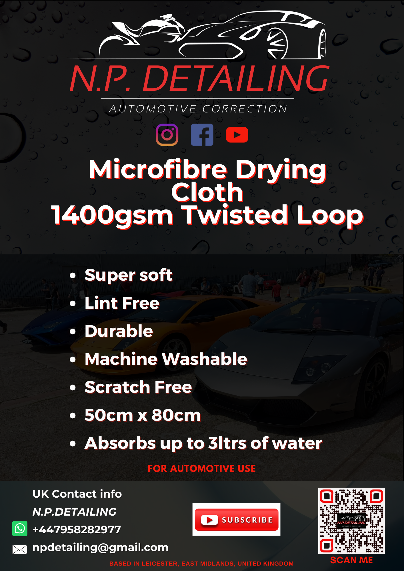 Real thick and soft so wont scratch the surface and will soak up water with ease. for quicker absorbency dampen slightly with water lay flat on he panel and slowly slide off leaving surface dry no need to wipe or scrub. 80% Polyester 20% Polyamide which is more then the average which makes the towel even more absorbent. Popular with car enthusiasts! as sold many at car shows at our trade stands.